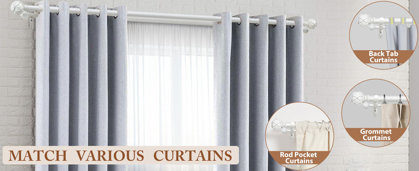 • ATTRACTIVE ELEGANT STYLE - Unique netted texture finial on the frond rod end and classic ball finials on the back rod end, add elegant to your windows and decorate home perfectly. Double rods constructions creates a layered look, great for grommet, back tab, rod pocket and tab top curtains.